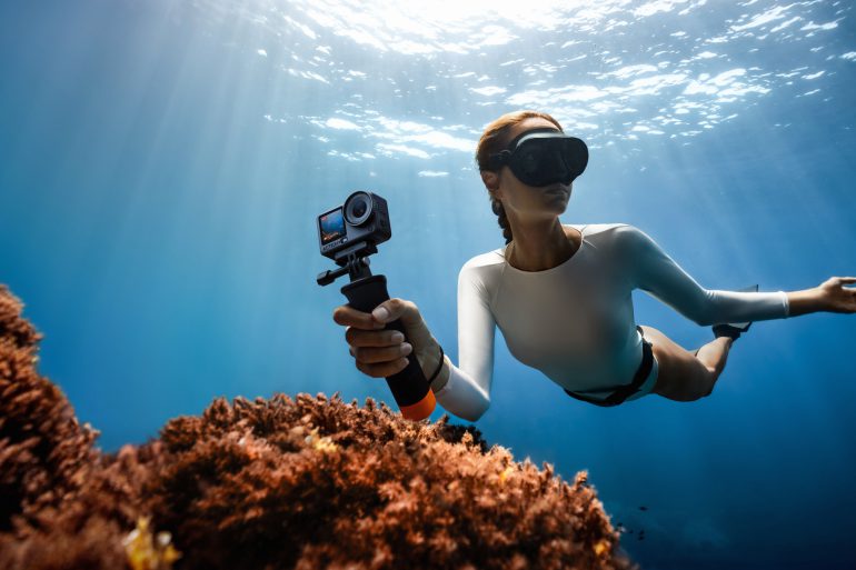 Osmo Action 6 è pronta per qualsiasi tipo di azione, dalle immersioni e dallo sci al mountain biking e all’escursionismo. Con un grado di impermeabilità IP68, la fotocamera è resistente all’acqua fino a 20 metri senza custodia e fino a 60 metri con la custodia impermeabile. Il suo sensore integrato, tra i migliori del settore per la resa del colore, garantisce tonalità subacquee realistiche, mentre il manometro registra i dati dell’immersione.